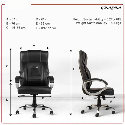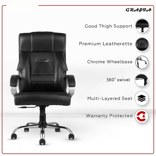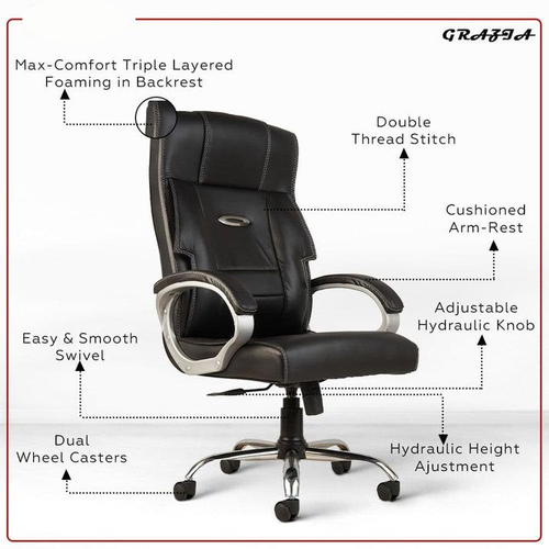 - Grazia’s 4 inches thick cushioned Backrest and Seat is made for Long Hours working which gives wider space to seat and its 3 Layered Foam adds Max – Comfort