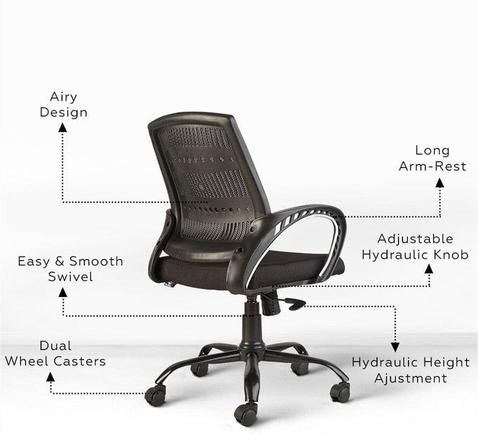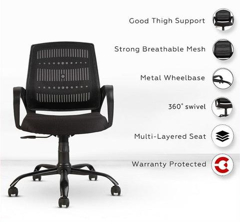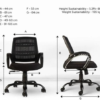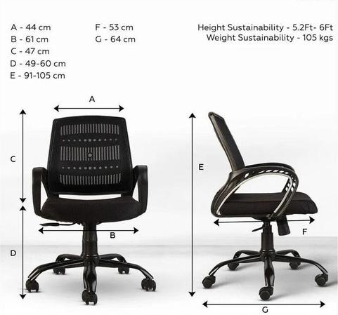 • Seat and Base : 2 inch Thick Foam Cushion Padded Seat for your long hours comfort | Pneumatic Hydraulic with 3 inch seat height adjustment | Breathable contoured Mesh Back Fabric | Chair comes with Sturdy Metal Base for extra strength